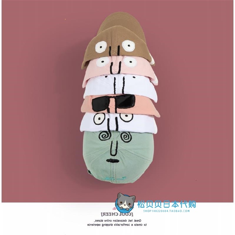 Japan imported cartoon face hat female summer soft top couple baseball cap show face small cap trend