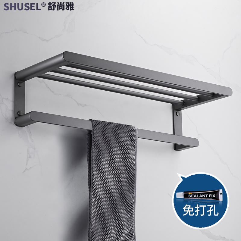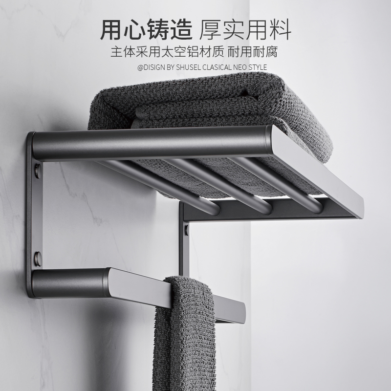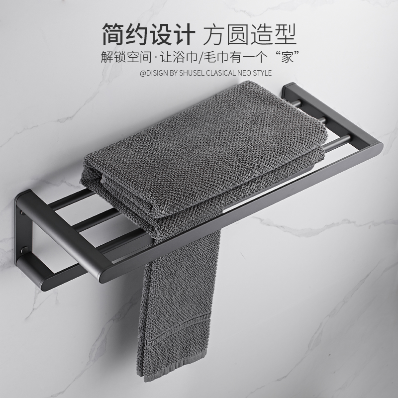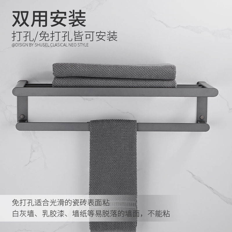 Nordic Grey Bath Towel Rack Makeup Room Bathroom No Punch Hair Towels Rack Wall-mounted Space Aluminum Shelve Bathroom Pendant