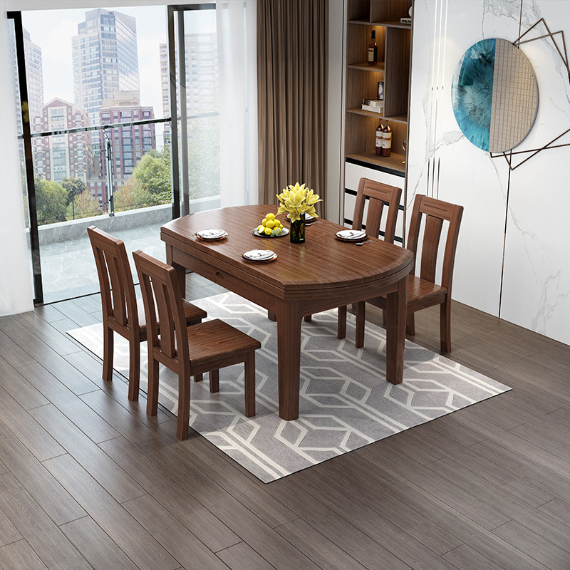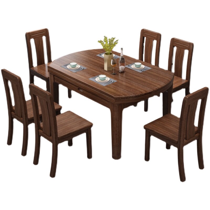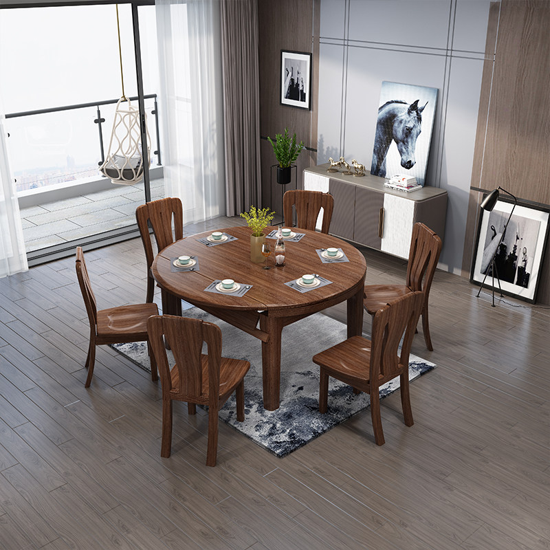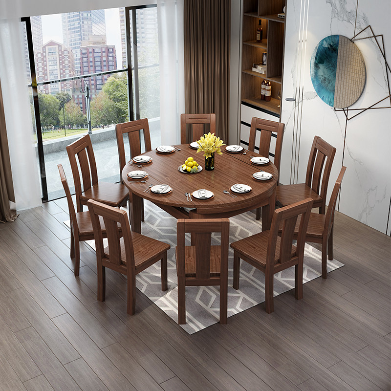 Walnut solid wood dining table combination foldable new Chinese furniture wood wax oil telescopic round table rectangular dining table