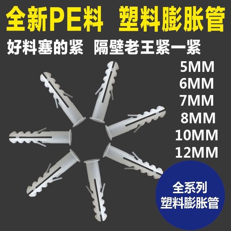 Round plastic expansion tube expansion screw wall plug expansion bolt Rubber plug extended expansion anchor 6mm8mm10mm