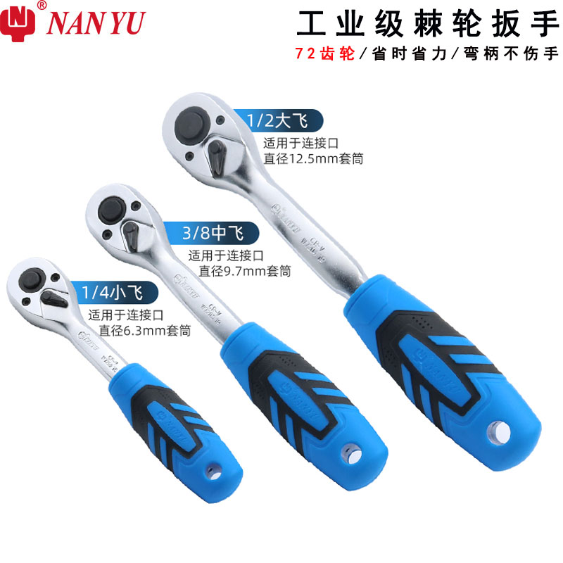 Taiwan Nanyu ratchet wrench fast two-way small fly big fly medium fast pull thorn wrench 72 teeth universal labor-saving