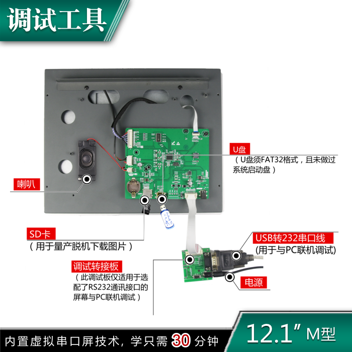 12 1 inch 1024*768 232 communication serial screen medical grade with shell IPS screen touch screen Guangzhou Dacai