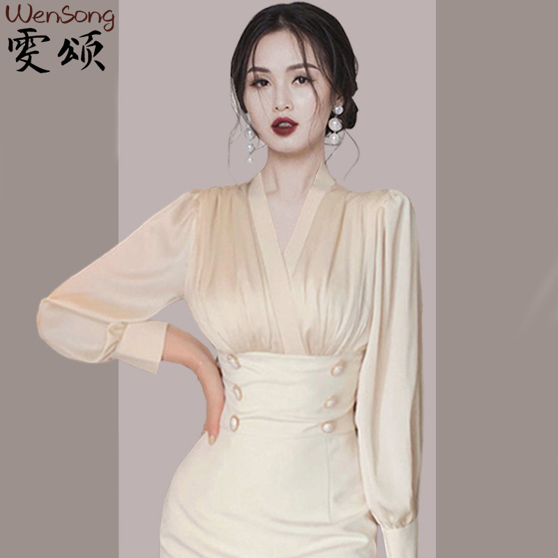 Temperament high-end lady dress women's 2022 autumn new goddess fan slim slim waist skirt women's clothing