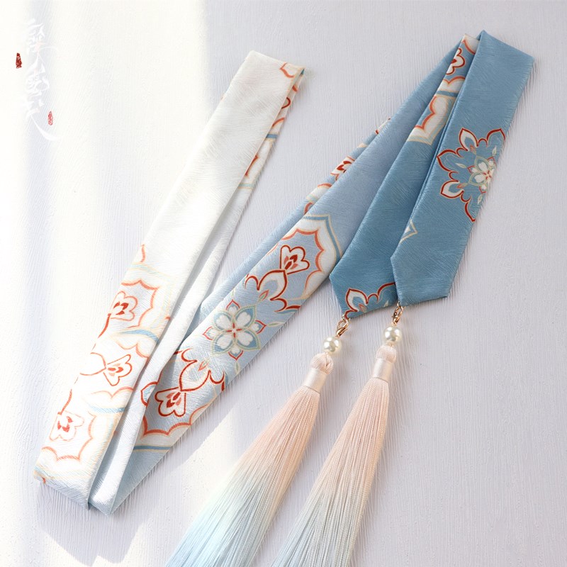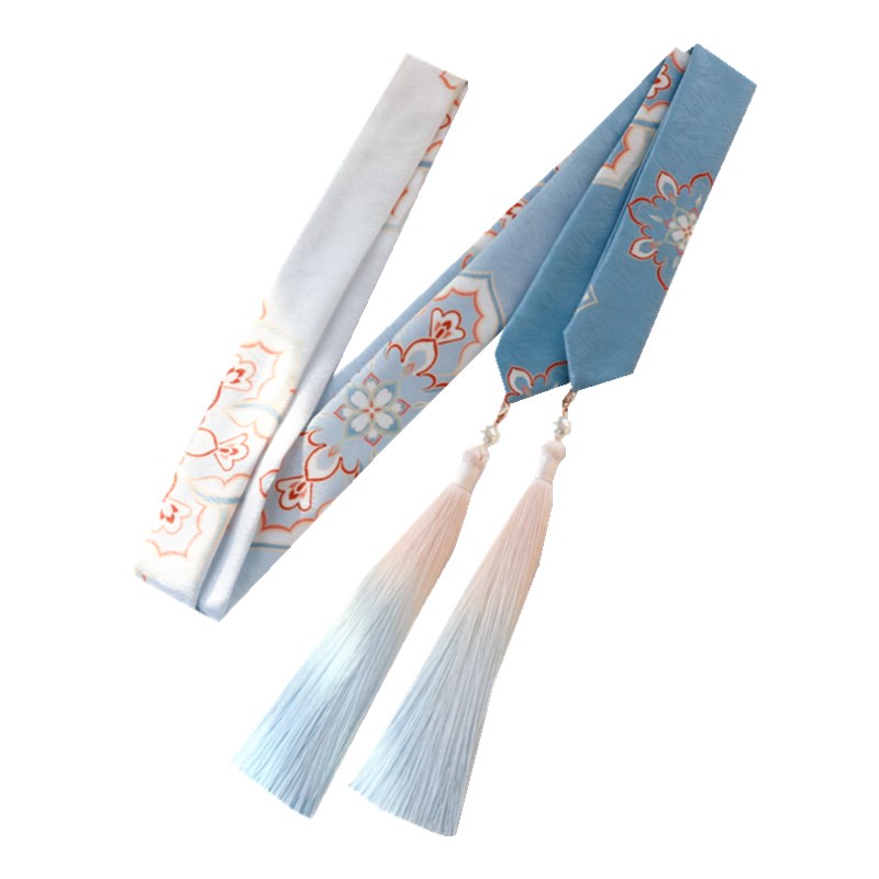 Clouds deep fog shallow lake light mountain color Original ancient style print streamer Hanfu gradually layered fringe hair with hair circle hair ornament
