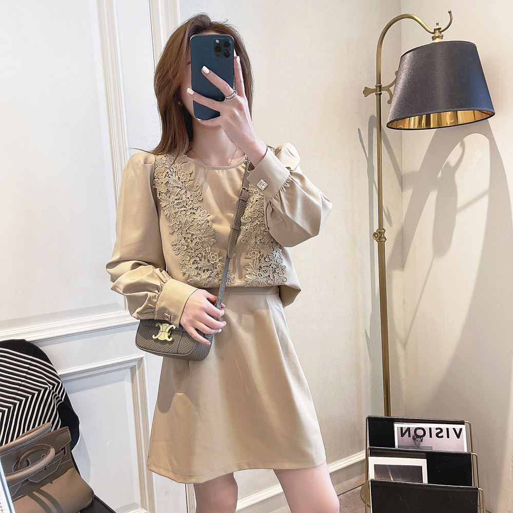 Suit 2022 spring new women's clothing Korean version of the fashion family style long-sleeved shirt skirt two-piece women's