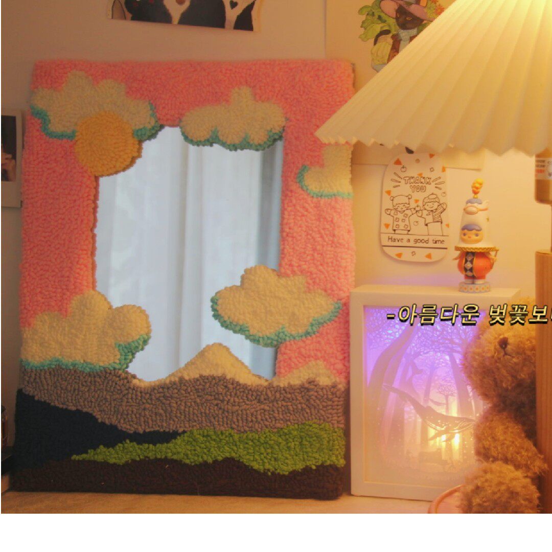 Poke embroidery mirror finished mirror containing mirror in personalized makeup mirror plush mirror transformation wool mirror DIY