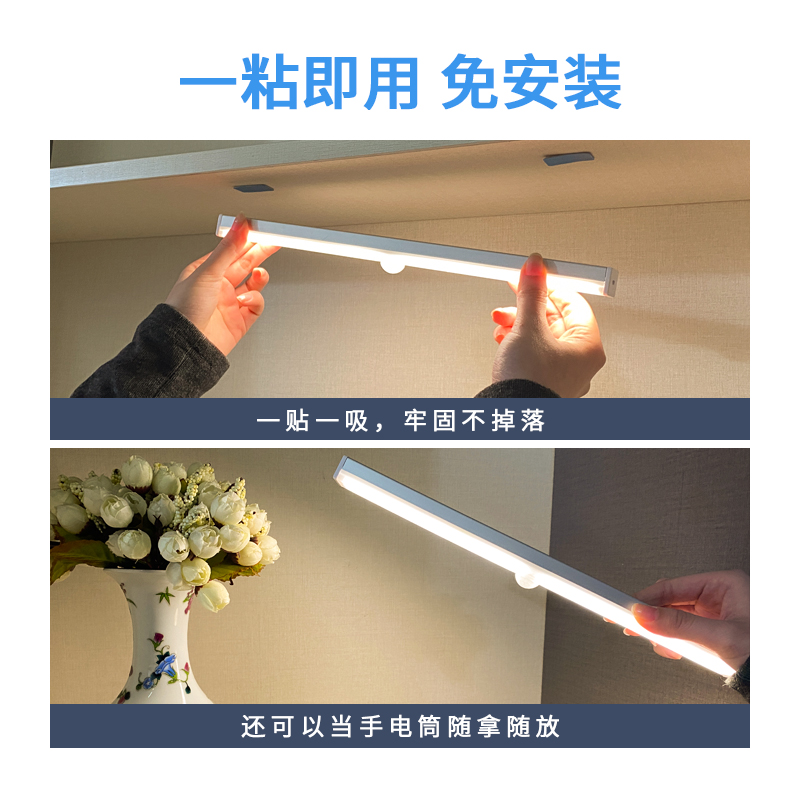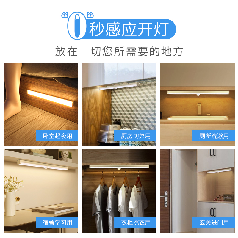 Rechargeable wardrobe sensing light strip led wireless automatic human kitchen lamp with USB magnetic suction Home integral cabinet light