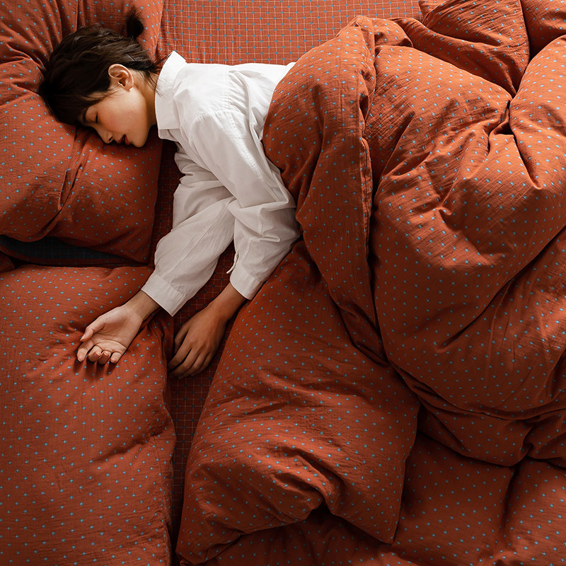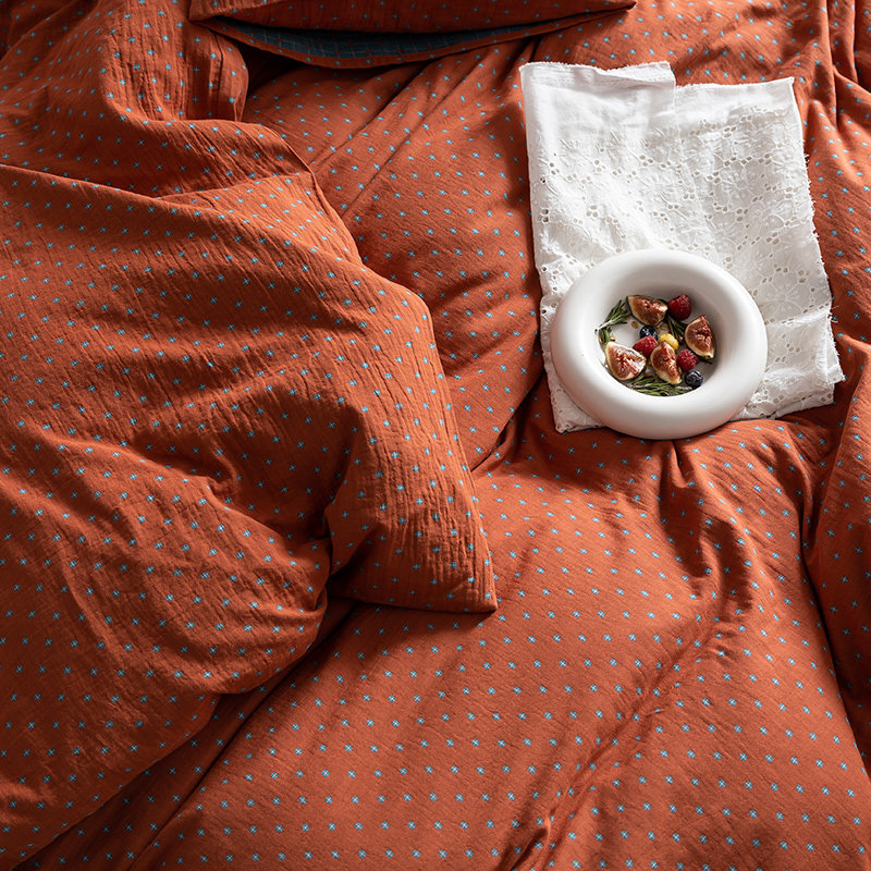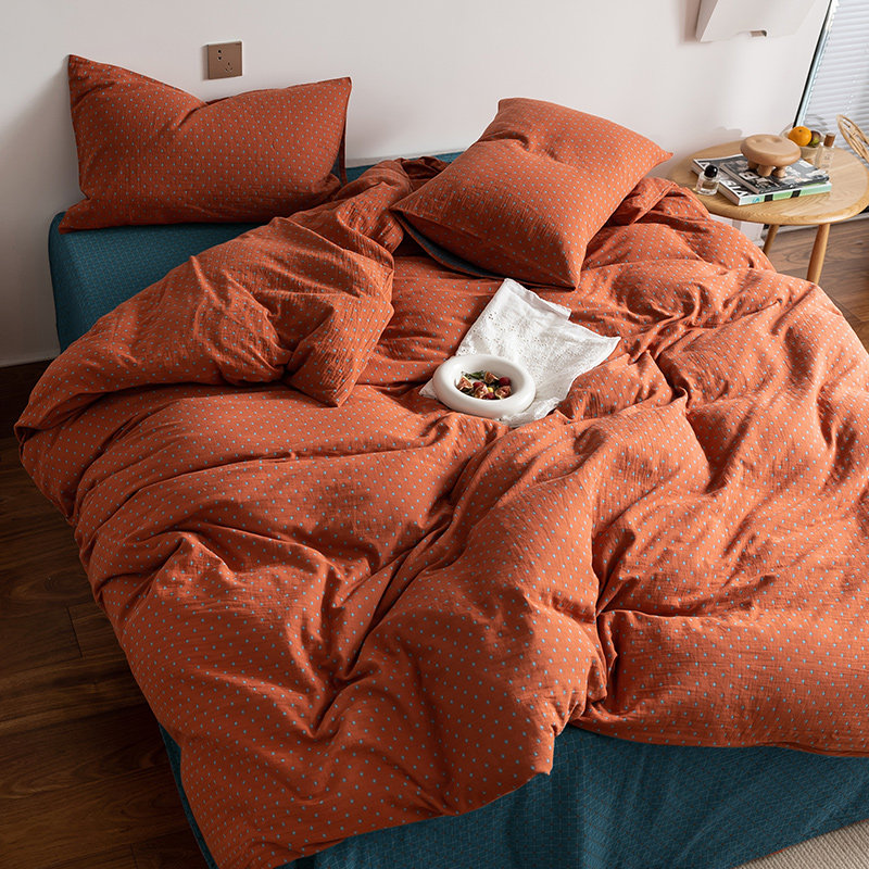 Type A double layer yarn pure cotton four pieces full cotton washed cotton small grid quilt cover sheet double 1 8m brief