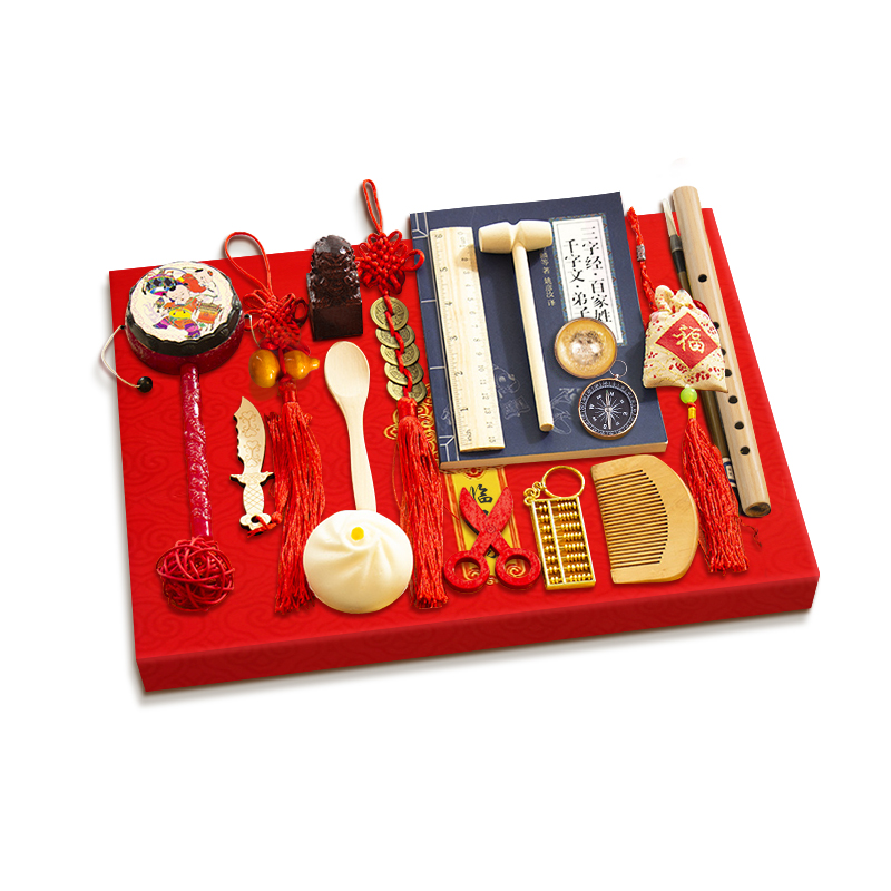 Germination Chronicle Chinese style arrest weekly gift box set of boy girl's first birthday Birthday Memorial Gift Grab of the Round Suit