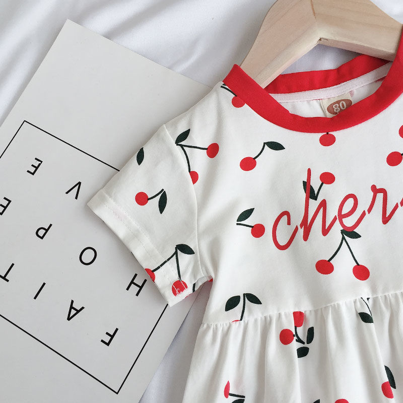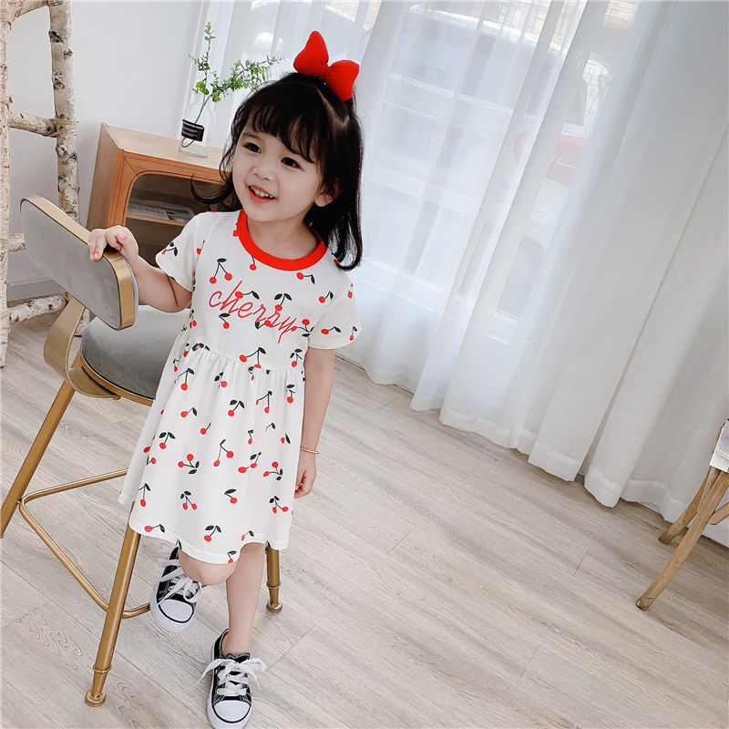 Ins girl skirt summer short-sleeved skirt women's thin section dress Korean version of foreign style children's baby cherry print