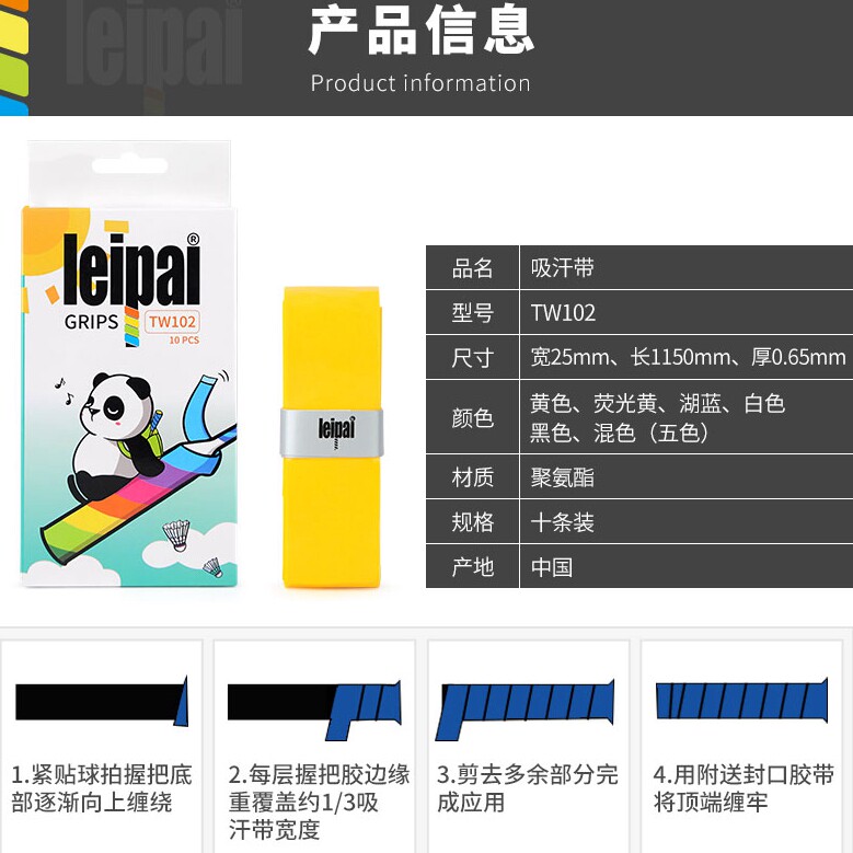 Lei Pai Leipai Fishing Rod Suction Badminton Racket Sweat with strap grip TW102 Handrubber flat 102 feel