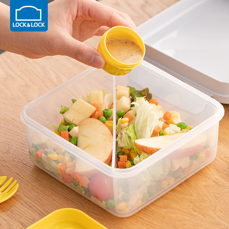 Music Buckle Lebuckle Separation Plastic Refreshing Lunch Box Double Lattice Salad Lunch Box Sealed Box Fruit Outdoor Sandwiches