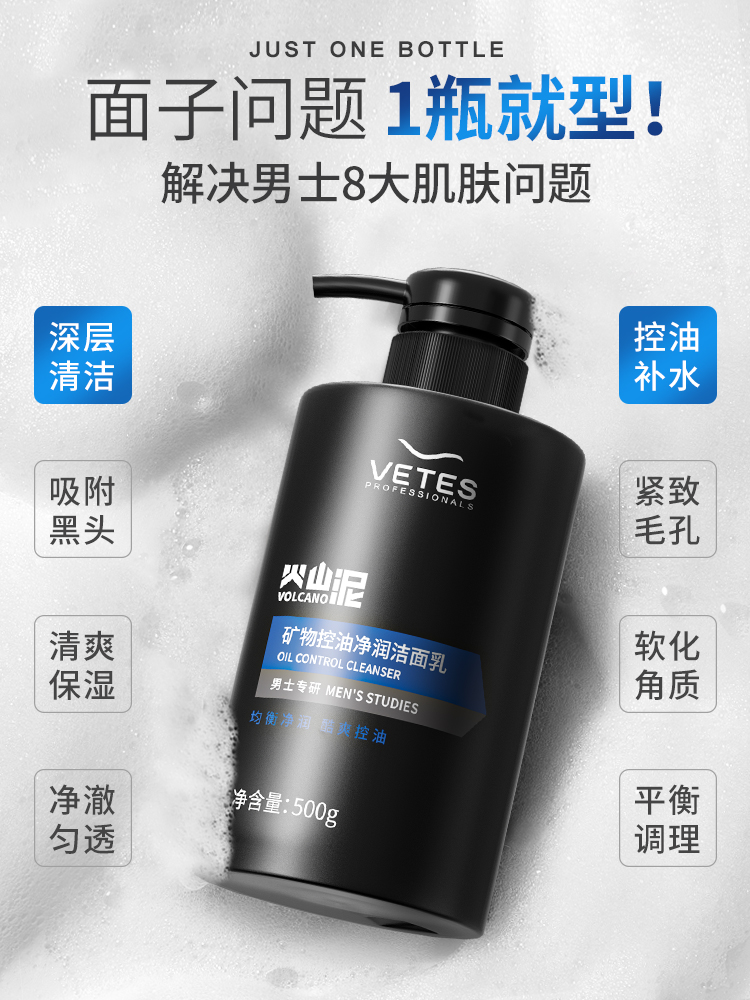 Volcanic mud facial cleanser for men Special oil control to remove blackheads, remove mites and acne, deep cleansing and moisturizing cleanser for students