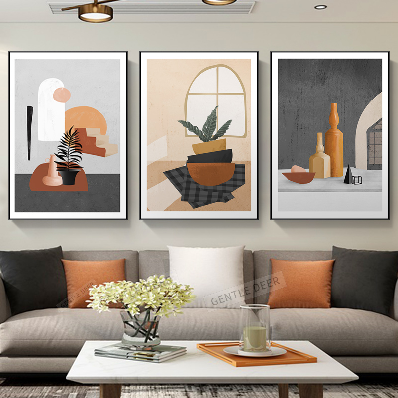 Nordic Living Room Decoration Painting Morandi Dining Hall Hung Painting Sofa Background Wall Mural Abstract Modern Minimalist triptych