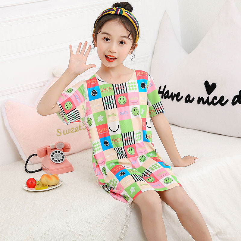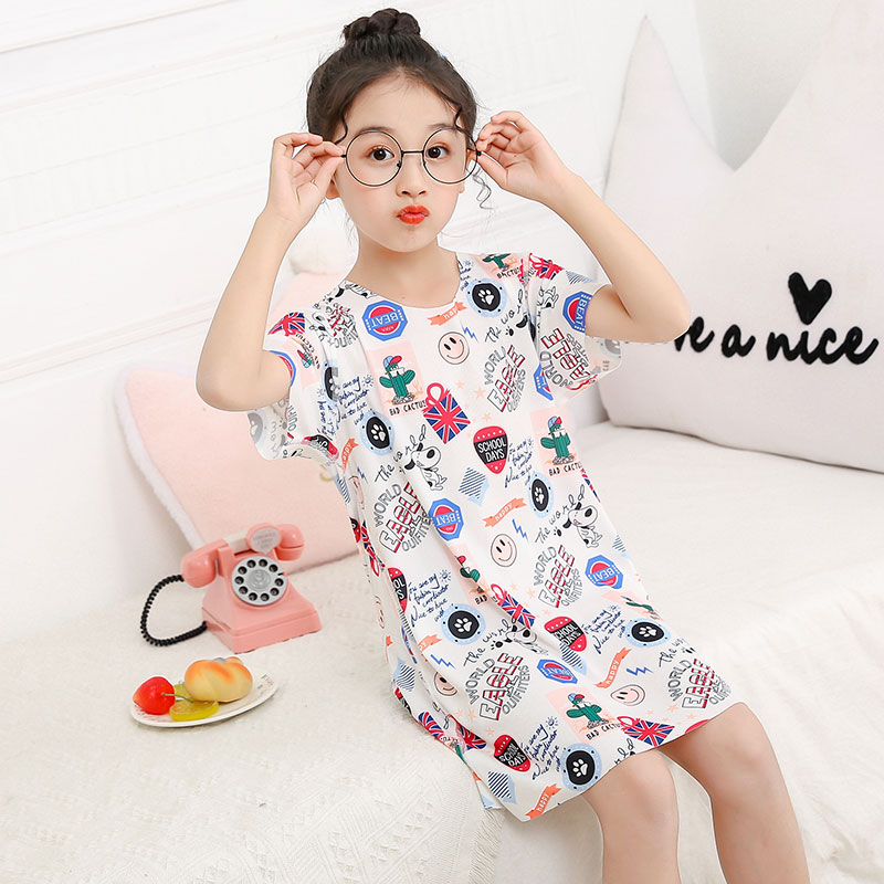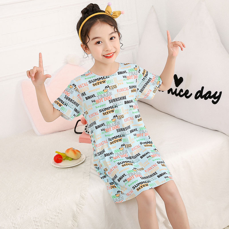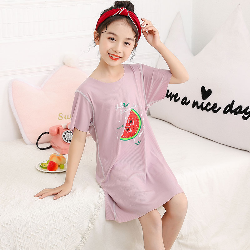 Girl No marks Sleeping Dress Ice Silk Summer Thin baby Children's Sleeping Princess Short sleeves Skirt Little Girl's Home Clothes