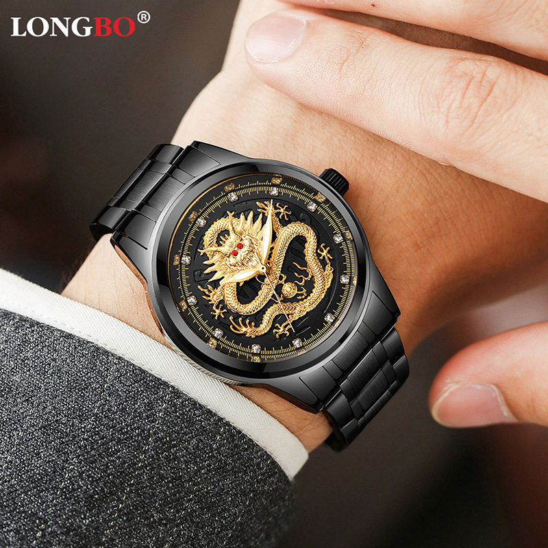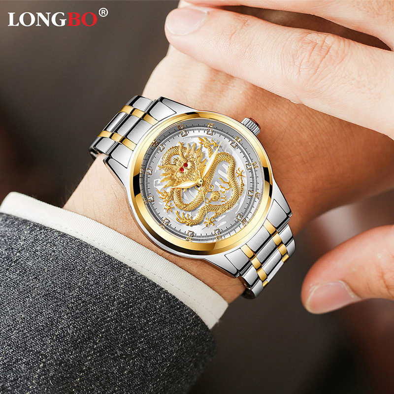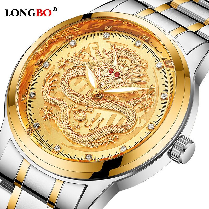 LONGBO Dragon Wave Temperament Men Watch Luminous Solid Gold Dragon Relief Waterproof Quartz Watch-Taobao