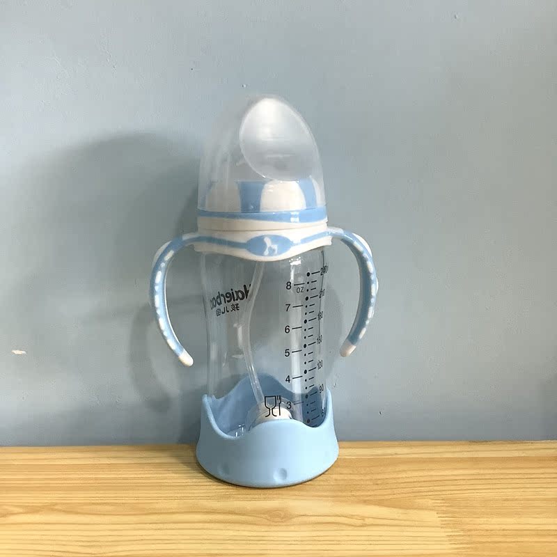 Newborn baby baby anti-flatulled gas straw with handle glass wide mouth diameter bottle 240ml