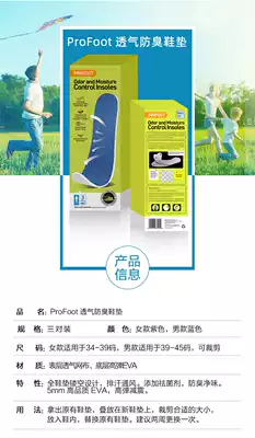 ProFoot deodorant insole Men's sweat-absorbing breathable deodorant anti-foot odor soft sole comfortable insole Soft ladies non-slip