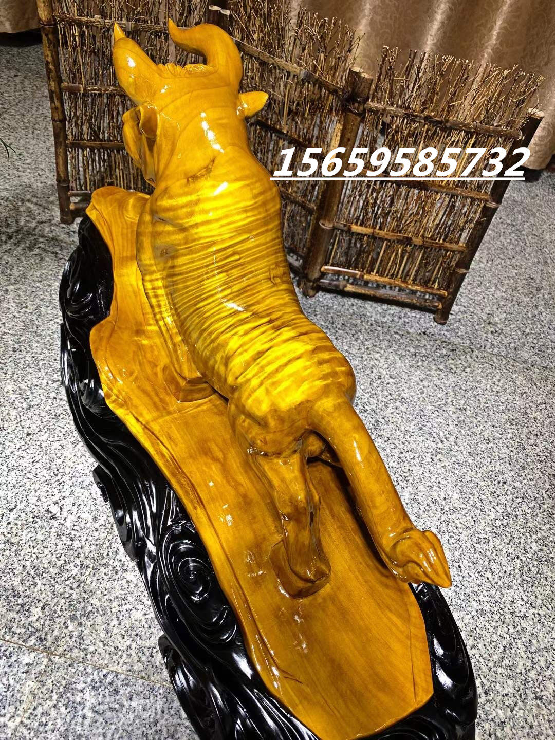Golden silk nanmu horse wood carving ornaments arrogant soaring to the sky, lucky town house, golden toad, pixiu, cow and deer, god of wealth, Buddha statue, crafts, gifts, ornaments