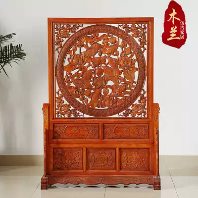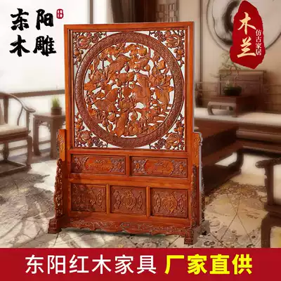 Dongyang woodcarving flowers blossom rich screen solid wood vertical floor-to-ceiling screen living room Chinese style feng shui porch partition