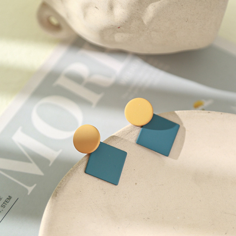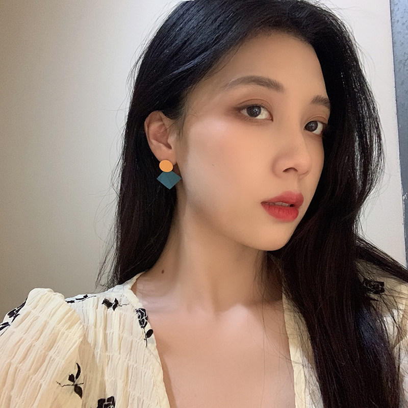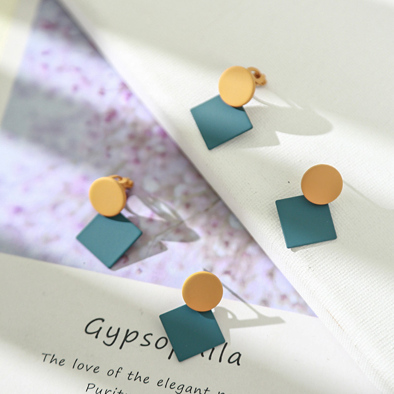Collision Color Geometric Earrings Vintage Port Wind Personality Round Earshot Korea Temperament Net Red 100 lap clip No earbuds woman