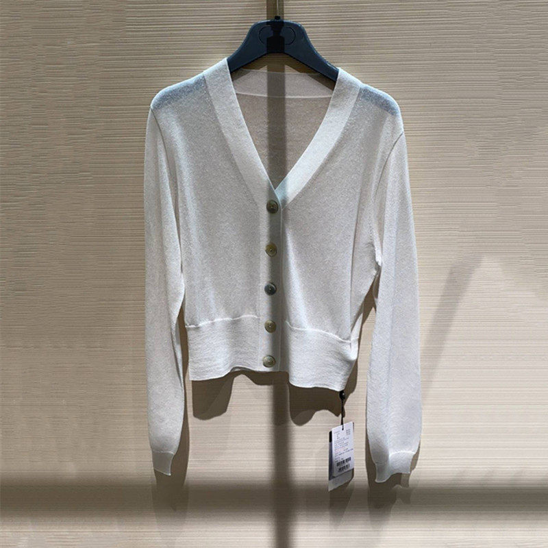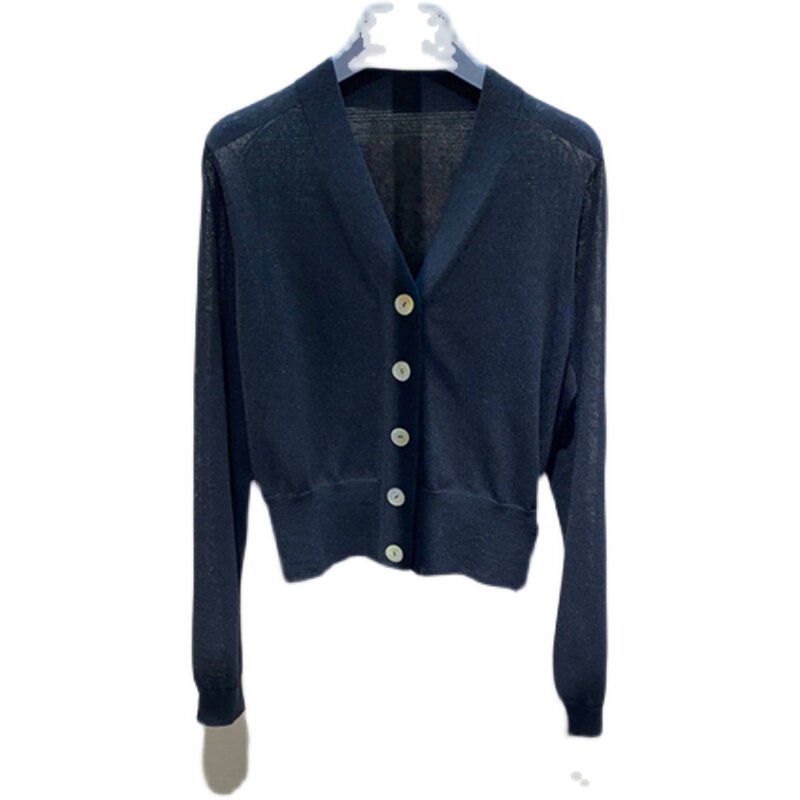 Women's Amasch 2021 autumn new ice silk knitted cardigan V-tone shirt short coat female