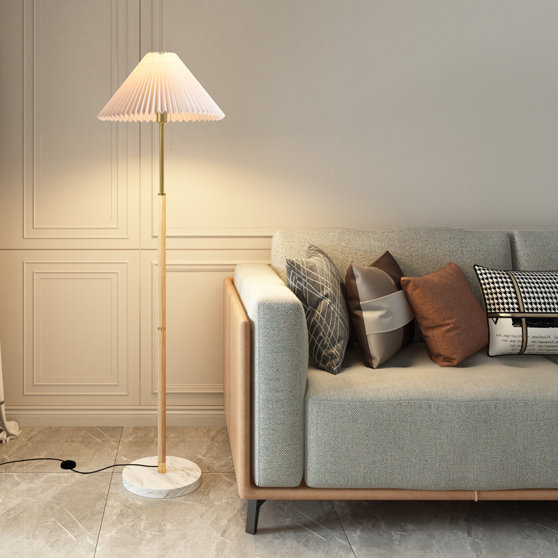 Nordic ins style straight rod floor lamp pleated living room new Chinese style light luxury American retro bedroom bedside lamp table lamp