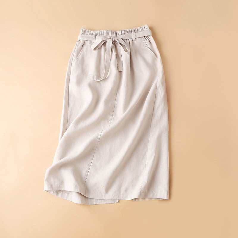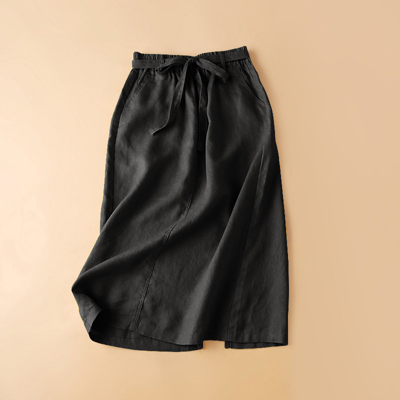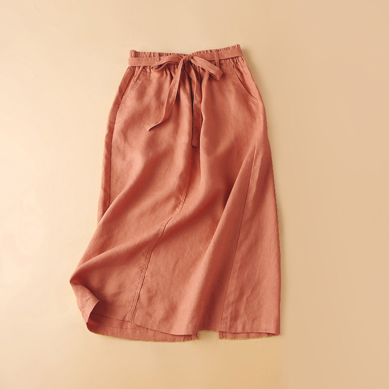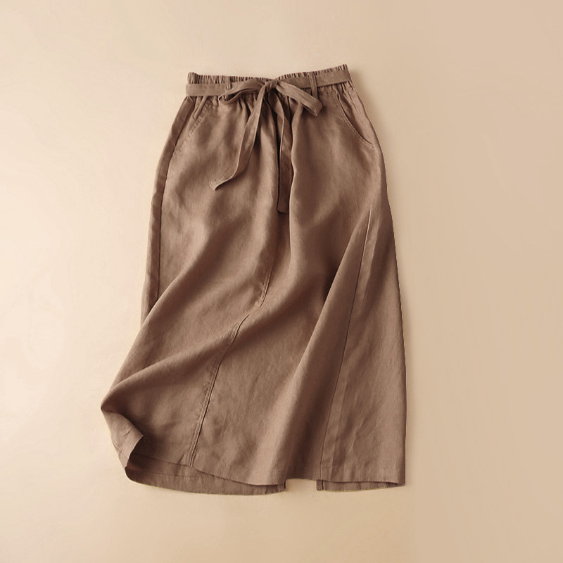 Linen skirt women's 2022 summer literary high waist cotton and linen mid-length skirt summer linen a-line skirt