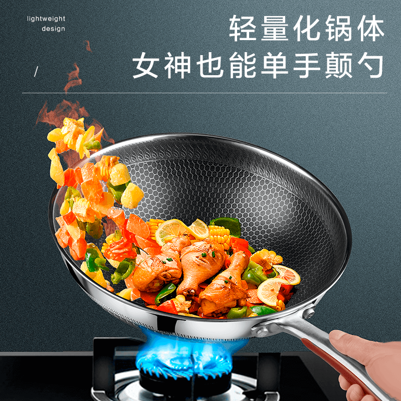 Oaks non-stick pan wok household 316L stainless steel pan frying pan induction cooker gas stove special pot