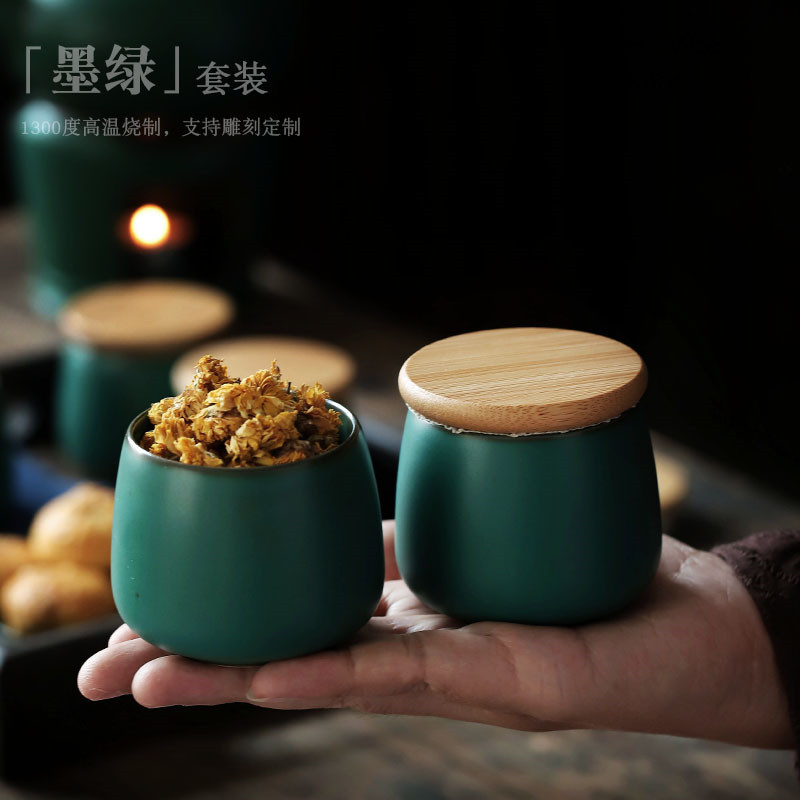Dark green pottery glaze six-edge small set with disc and plate Dark green pottery glaze six-edge small set with no disc and plate