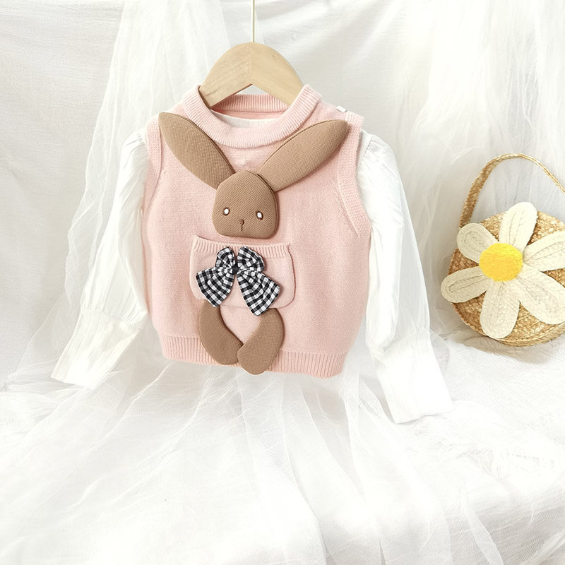 Girls' vest spring and autumn thin section baby knitted sweater outside wear waistcoat children's infant Western style pullover vest vest