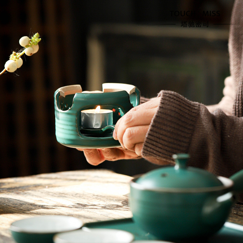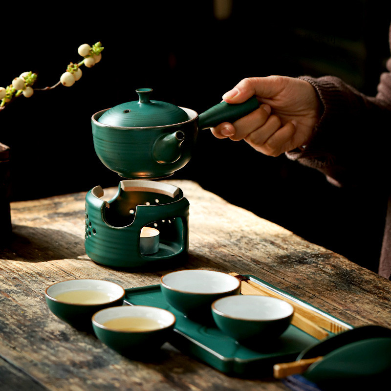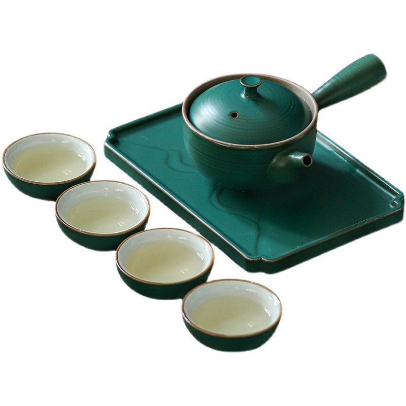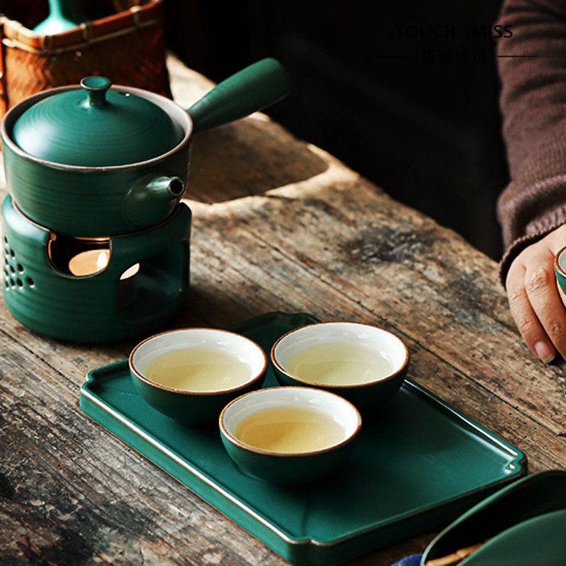 Touch Miss Japanese-style rough pottery tea set threaded side handle pot light luxury home gift style tea tray high-end set