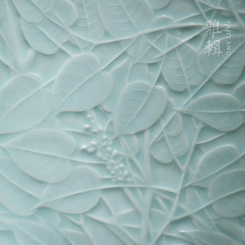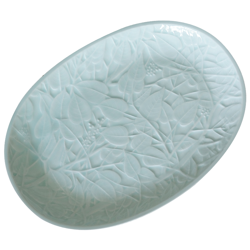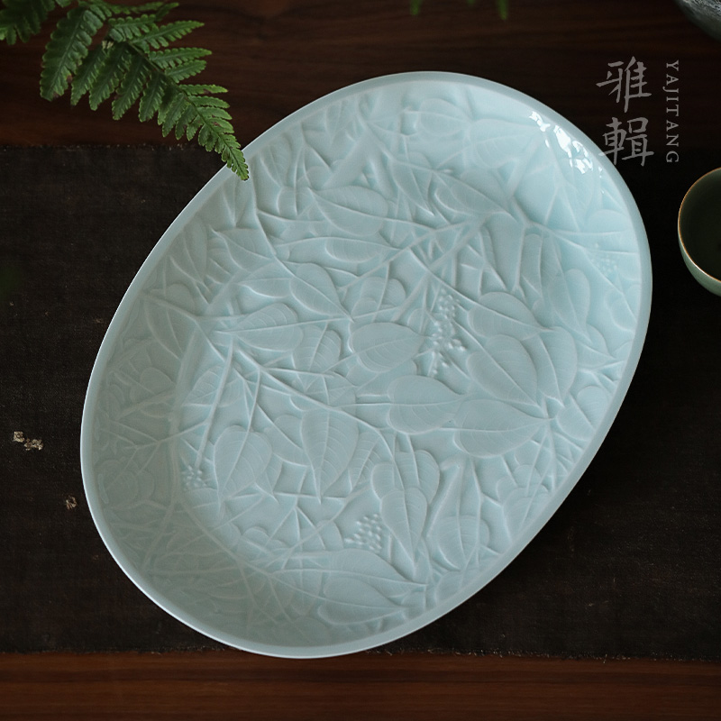 Elegant Bodhi Shallow Relief Green Glazed Tea Tray Jug Fruit Tray Daily Nursery Size Two-in-size