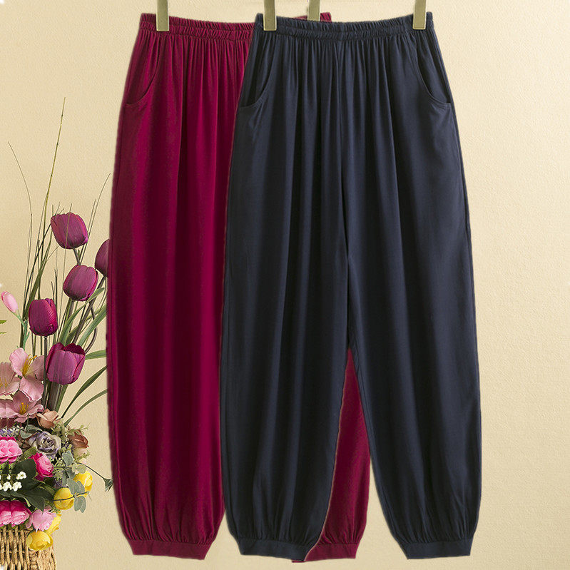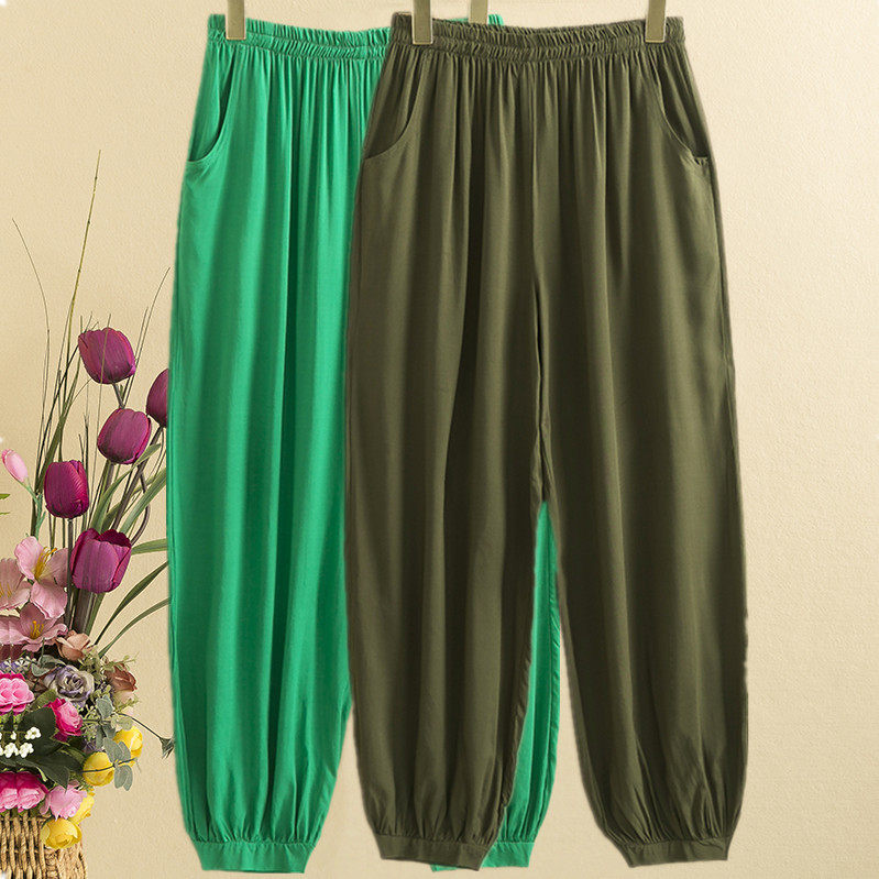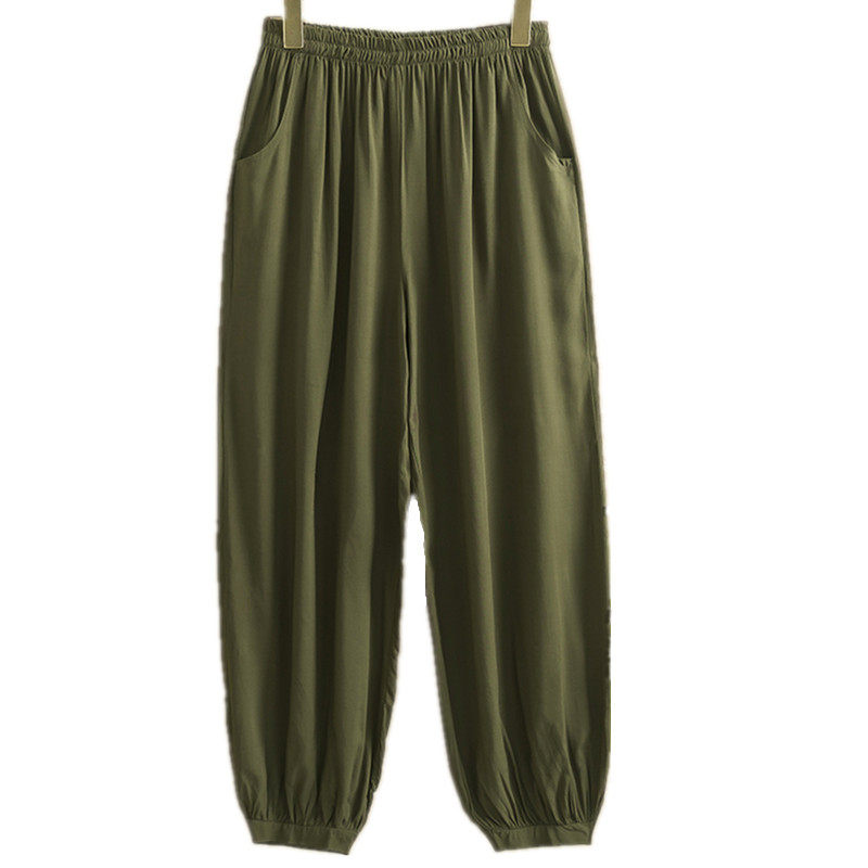 Summer practice cotton poplin 2021 women's pants artificial cotton loose dance yoga pants Tai Chi pants middle-aged bloomers thin
