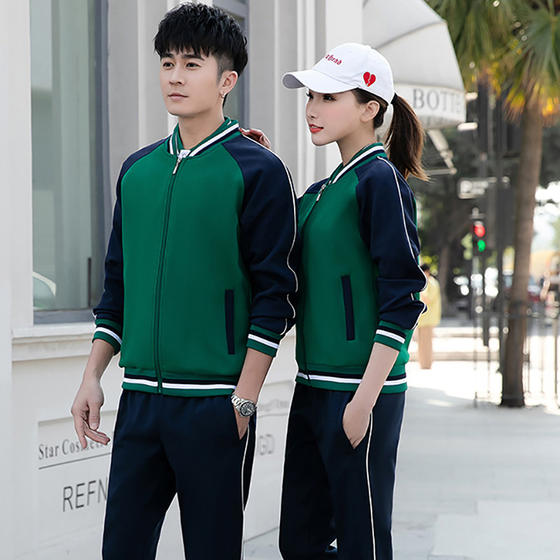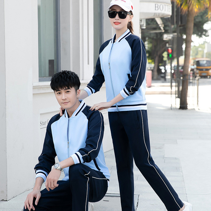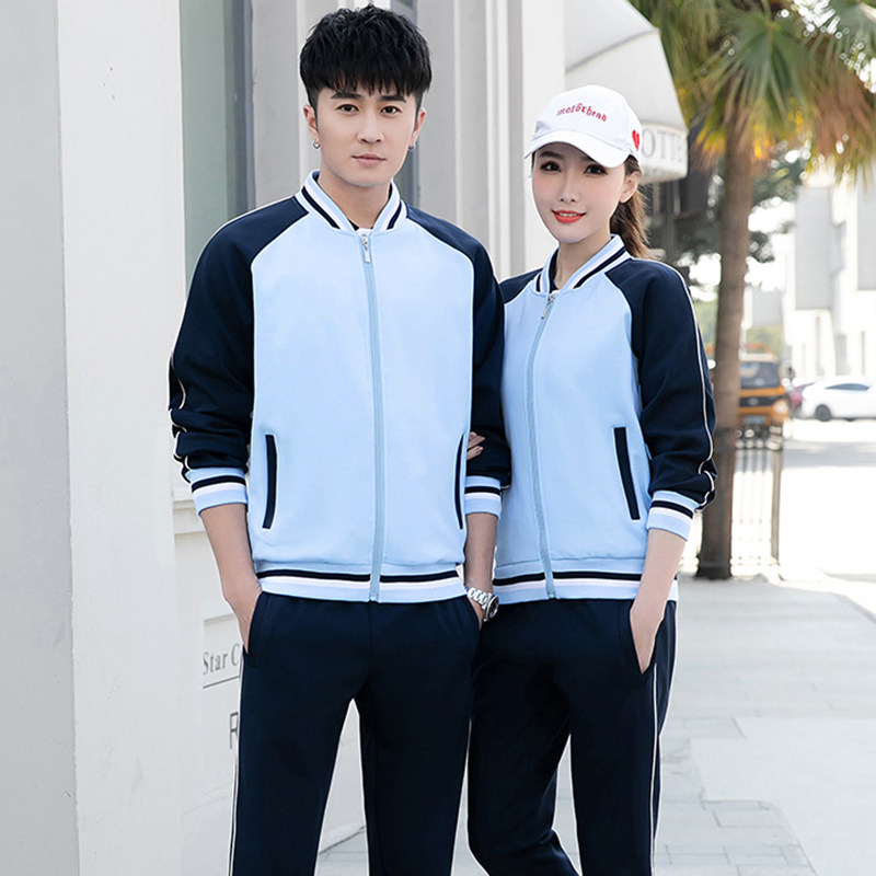 Cotton sports suit Men and women Spring and autumn lovers Long sleeves casual running sportswear group customized print class school uniforms