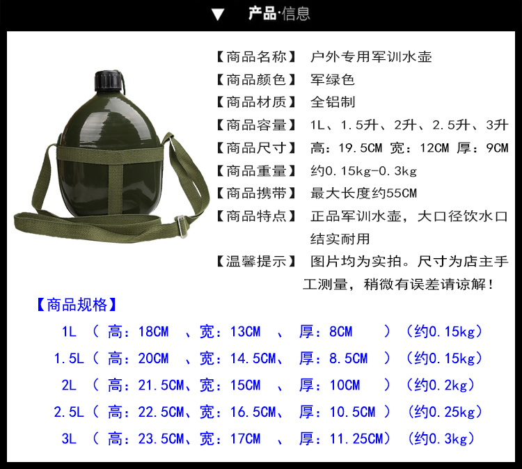 Thickening 87 Type Aluminum Kettle Outdoor Sports Climbing Student Military Training Kettle Portable Large Capacity Military Kettle