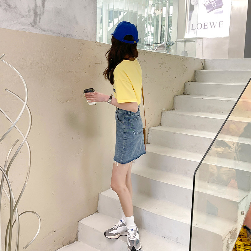 Brin high-waisted a-line denim skirt 2021 summer new wild thin denim skirt female ins tide