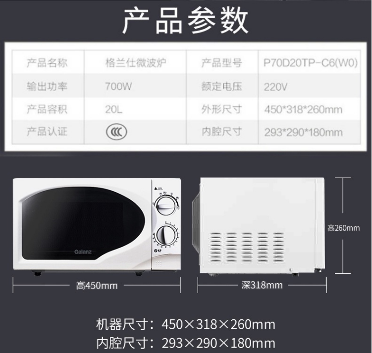 Granse microwave oven P70F23P - G5 official mechanical knob household small 23 liter flat large capacity