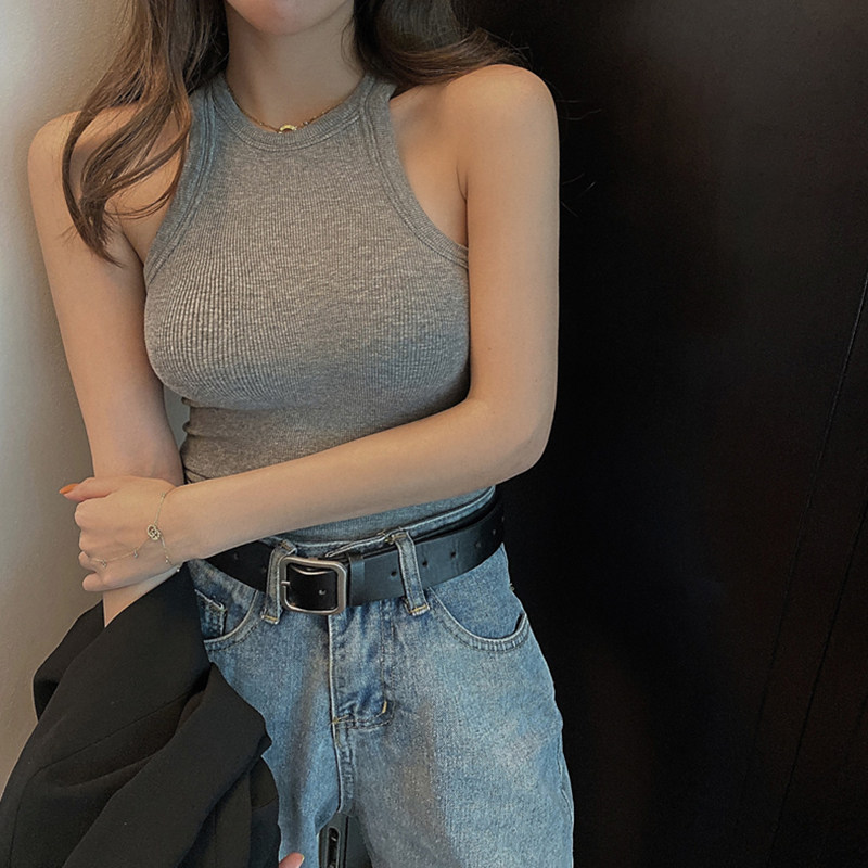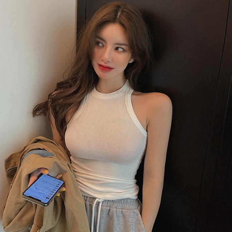 Black I-shaped hanging neck camisole women's summer wear hot girls sexy tight short bottom sleeveless top