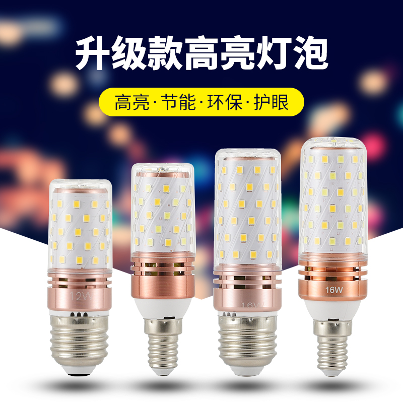 LED light bulb energy-saving lamp E14 small screw mouth E27 corn lamp home lighting ultra-bright pendant lamp light source triple color light change