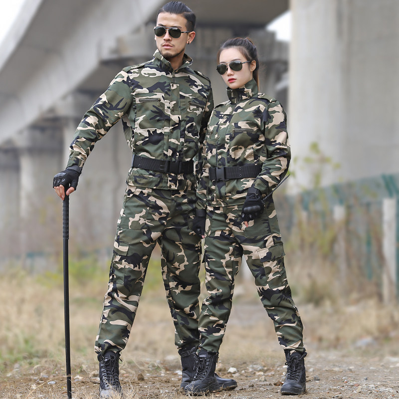 New genuine camouflated suit for men's spring and summer long sleeve army training suit with a full set of wear-and-wear workwear work suit a set of women