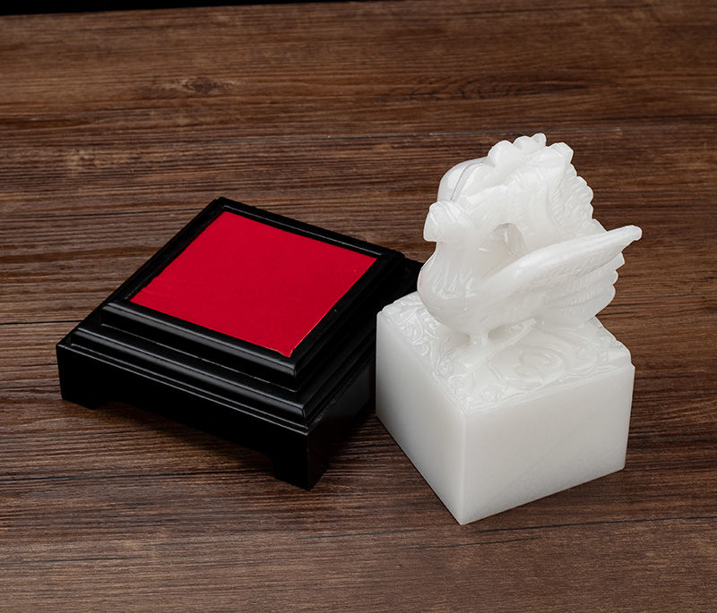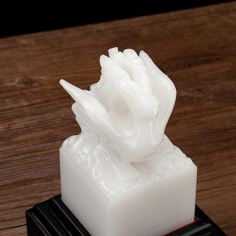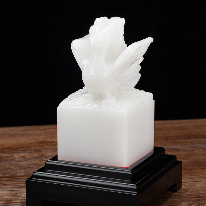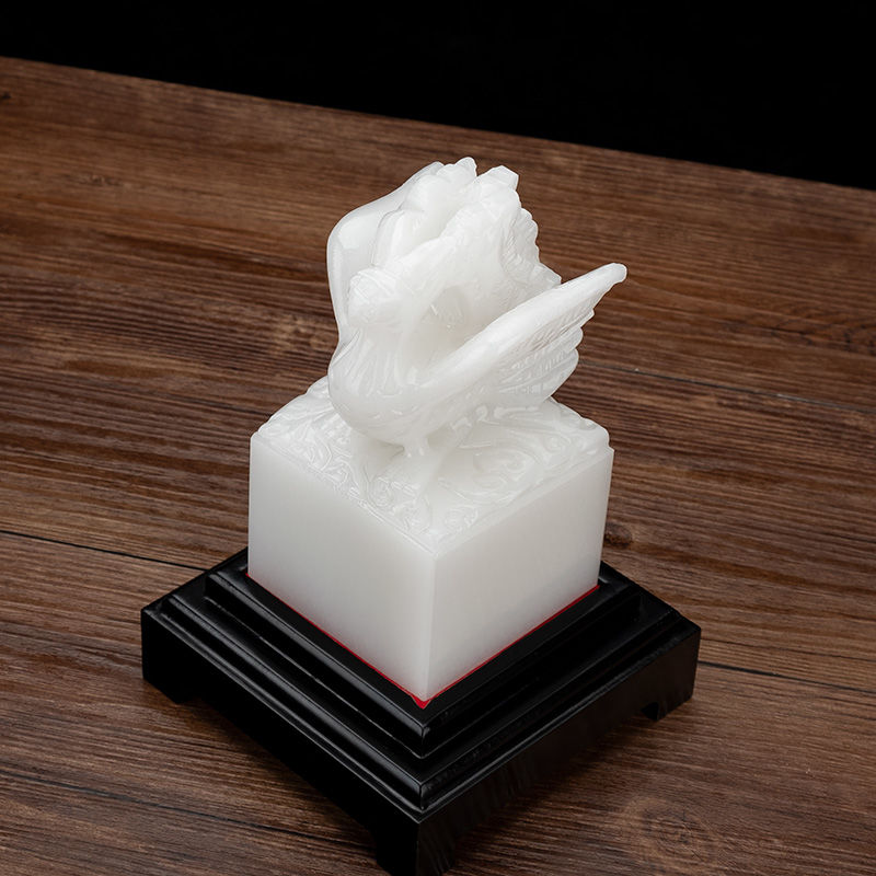 Wang Fulai Baiyu Peacock Phoenix Indian jade Jade Seal Pendulum's Office Grand Seal Swing Piece Company Gift GIFT