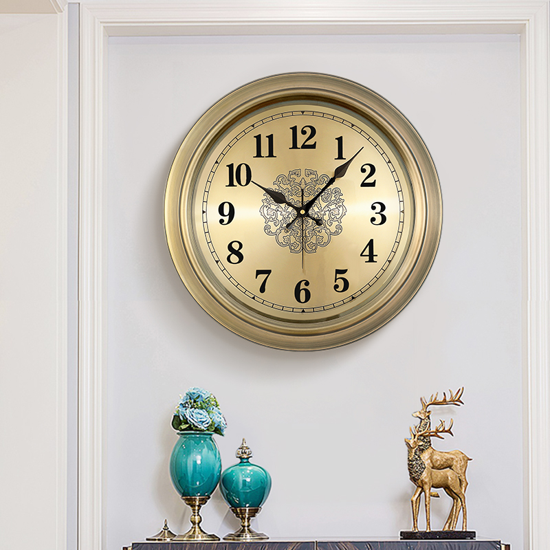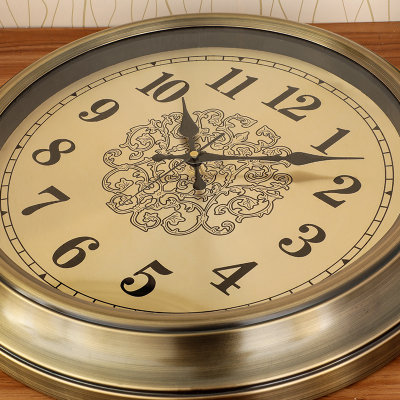 Metal hanging clock Living room Large number of muted round retro hanging tables Eurostyle minimalist clocks and watches American Nordic home clock