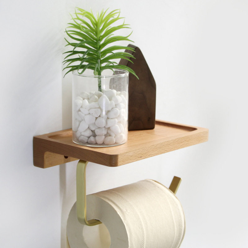 Paper towel rack dressing room toilet roll toilet paper rack solid wood mobile phone rack wooden free toilet paper rack free punching