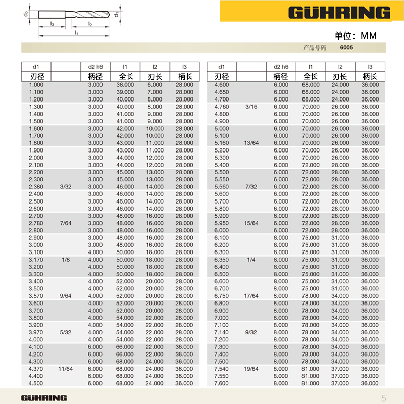 Germany imported cobalt collar 6005 drill bit super hard powder metallurgy steel CNC stainless steel alloy GUHRING rotary drill bit