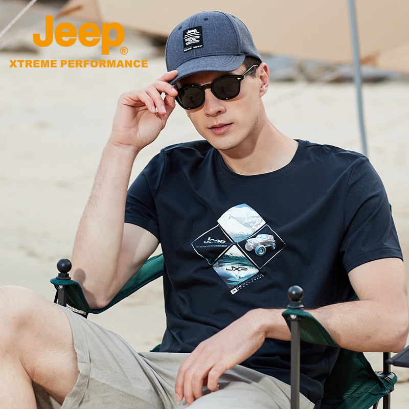 Jeep Jeep spring and summer short-sleeved t-shirt men's 2021 new loose quick-drying fitness top casual round neck sports tide