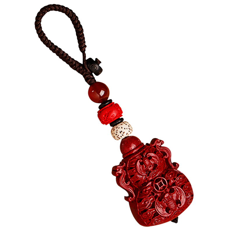 Zijin cinnabar safe gourd car keychain pendant decoration creative high-grade rope chain pendant men and women couple bag gifts