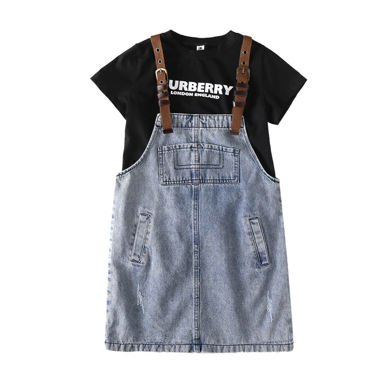 Girls' denim baby bag skirt suit 10 middle-aged children's summer short-sleeved skirt two-piece Korean version summer thin section new