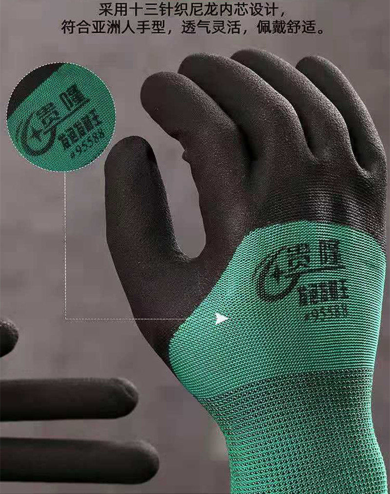 Guyron glove Lauprotect abrasion resistant and non-slip outdoor worksite work rubber rubber sheet green gloves a pack of 12 double
