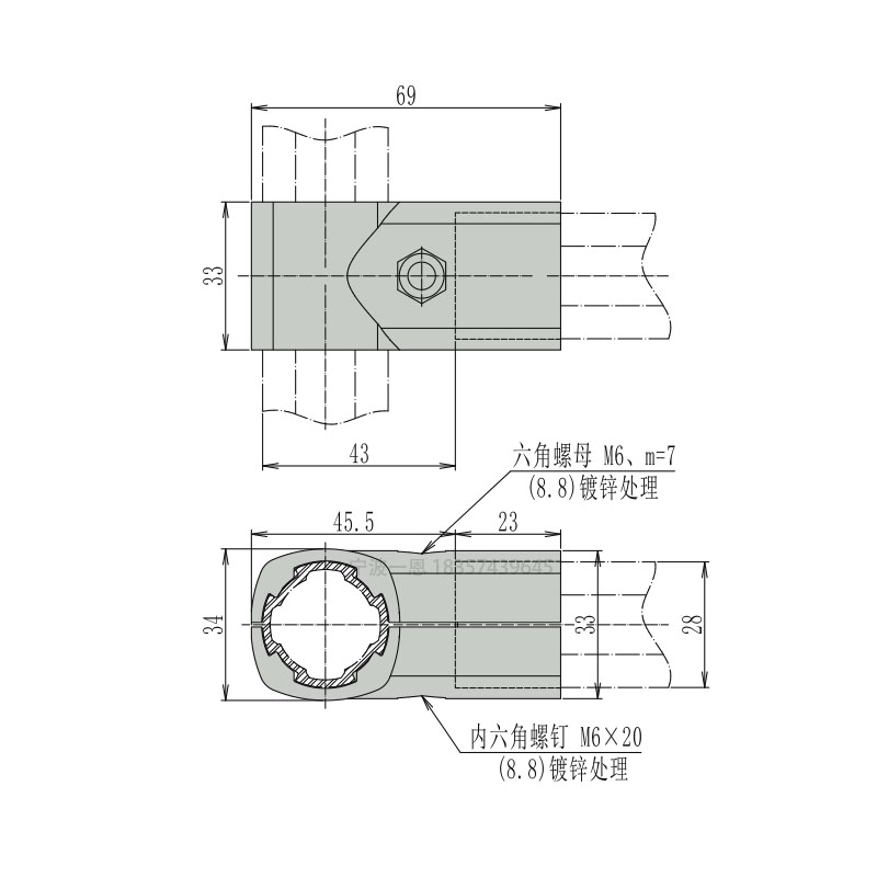 Outside embracing direct head 28mm third generation wire bar manufacturer aluminum alloy lean tube connector profile round aluminum tube accessories